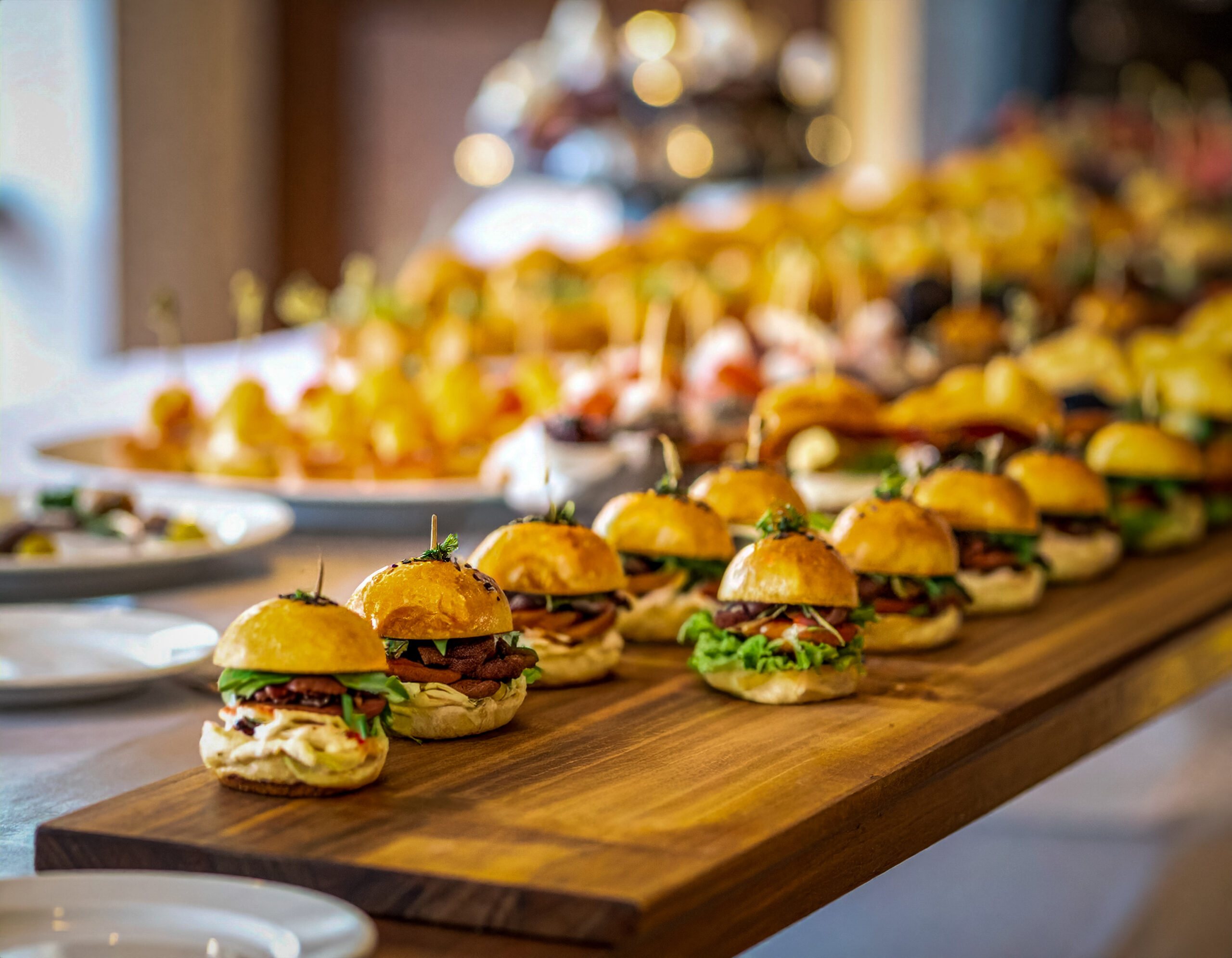 | Interactive Toppings: Guests can customize their sliders with options like caramelized onions, jalapeños, specialty aiolis, pickles, and several cheese types. | Handling Time: The assembly of many tiny sandwiches requires more labour and prep time before the event begins. |
