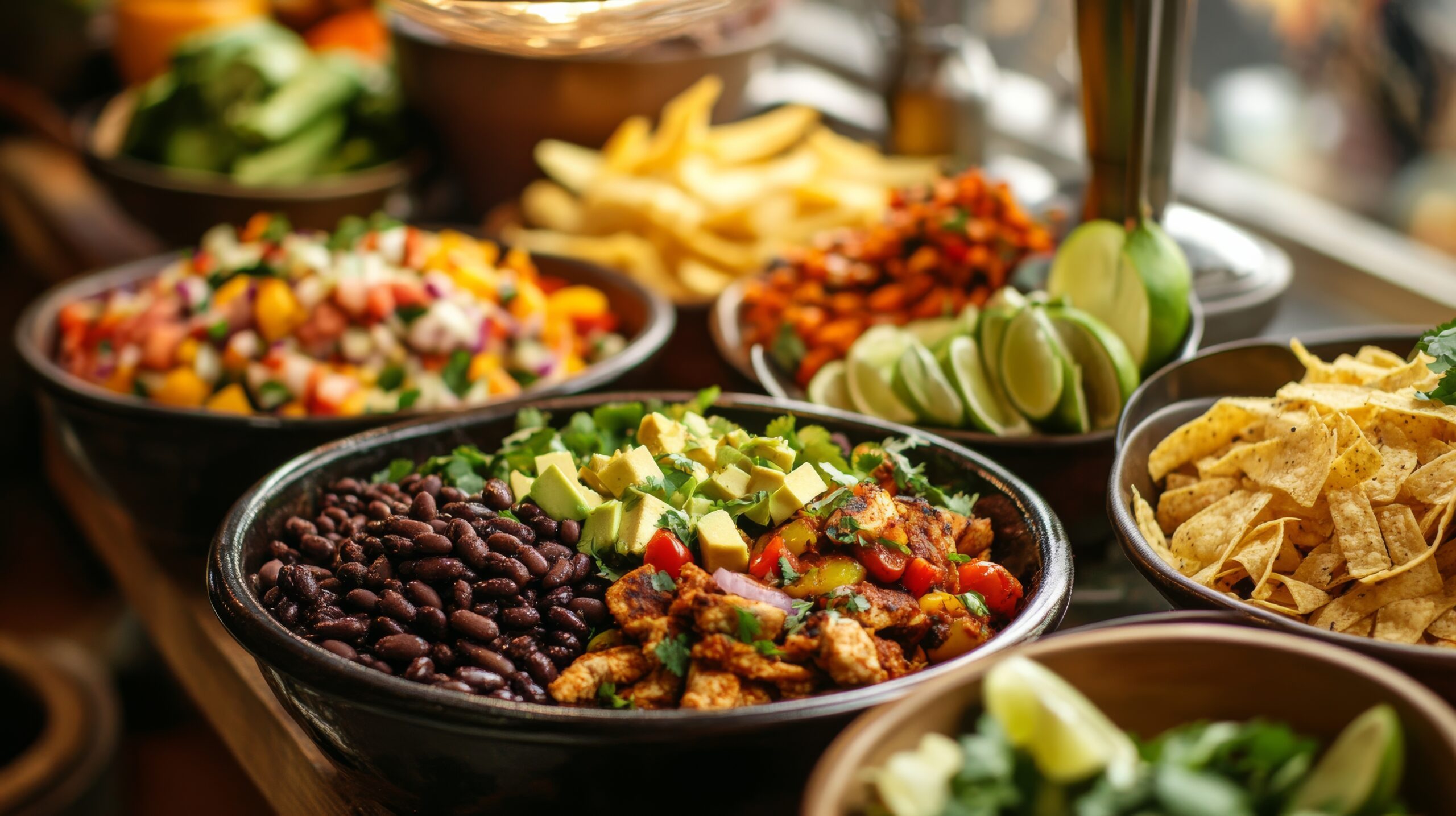 | Dietary Flexibility: This is arguably the most flexible station. Guests can choose corn tortillas (GF), omit dairy, and easily build vegan or vegetarian bowls (rice/beans/tofu). | Cross-Contamination Risk: Since this is self-serve, you must clearly label all potential allergens (nuts, soy, etc.) and keep vegan and meat proteins separated. |