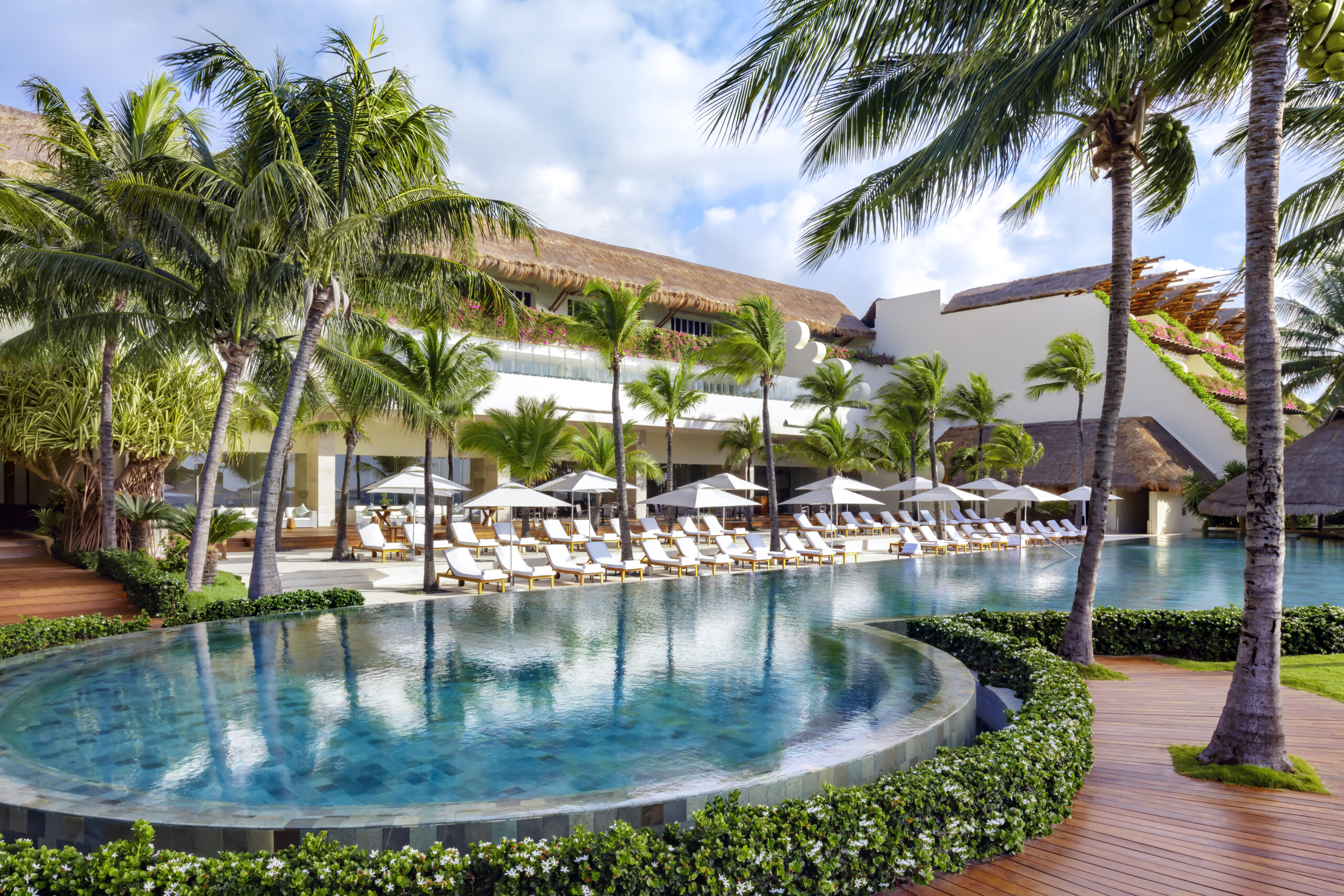 Imagine waking up to the sunrise over the ocean, with a cup of coffee in hand as you sit beside your private plunge pool on the balcony of your suite. Feeling the breeze through the palm trees and smelling the sweet scent of the ocean while reminiscing about the night before, when you were welcoming your guests to a beachside cocktail party. This is the reality at the Grand Velas Riviera Maya.