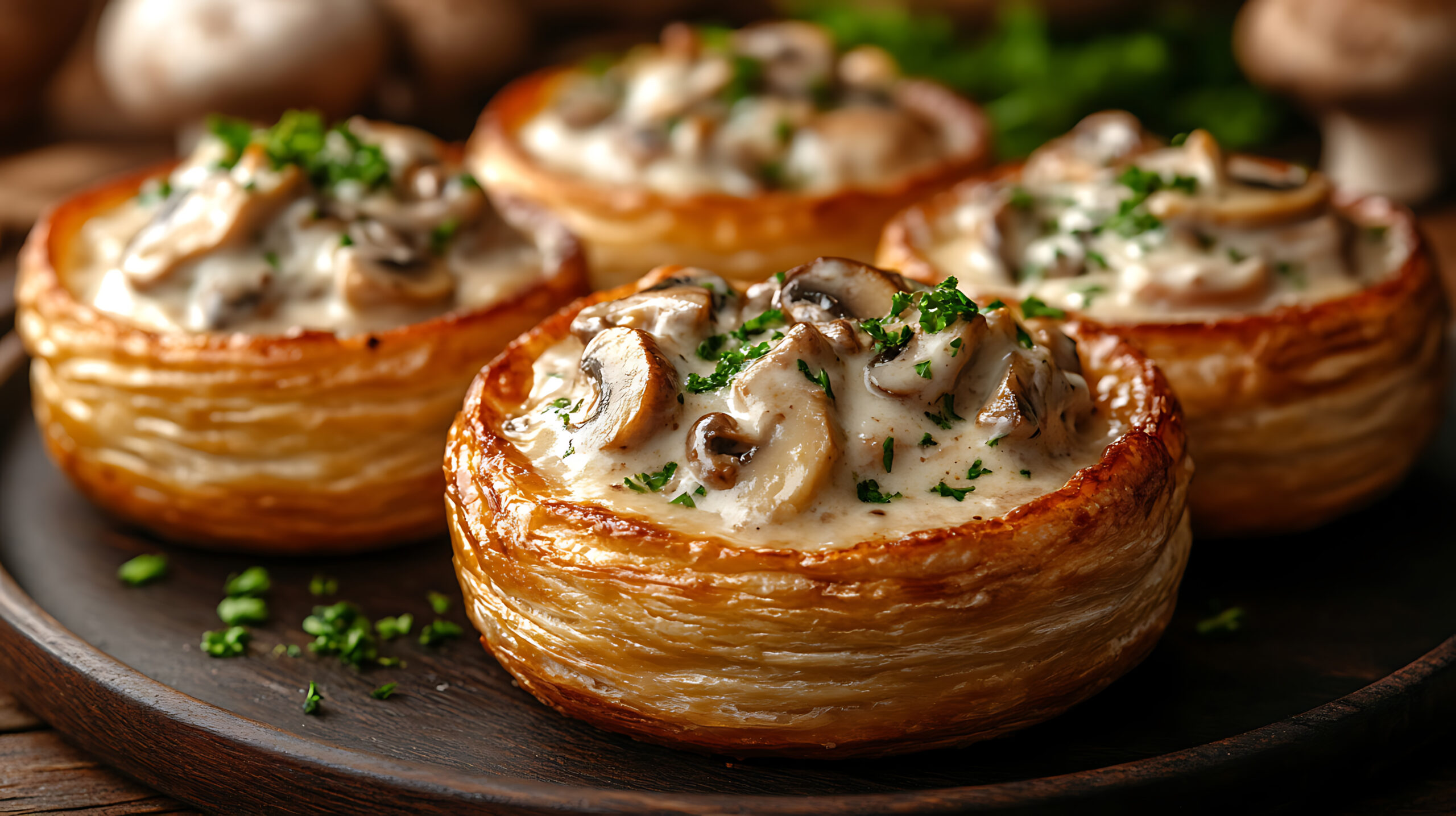 A crisp shortcrust shell filled with wild mushroom duxelles (shiitake and oyster). Finished with a drop of white truffle oil and a “soil” crumble of dehydrated balsamic. It brings an earthy, umami depth to the lighter tea service.