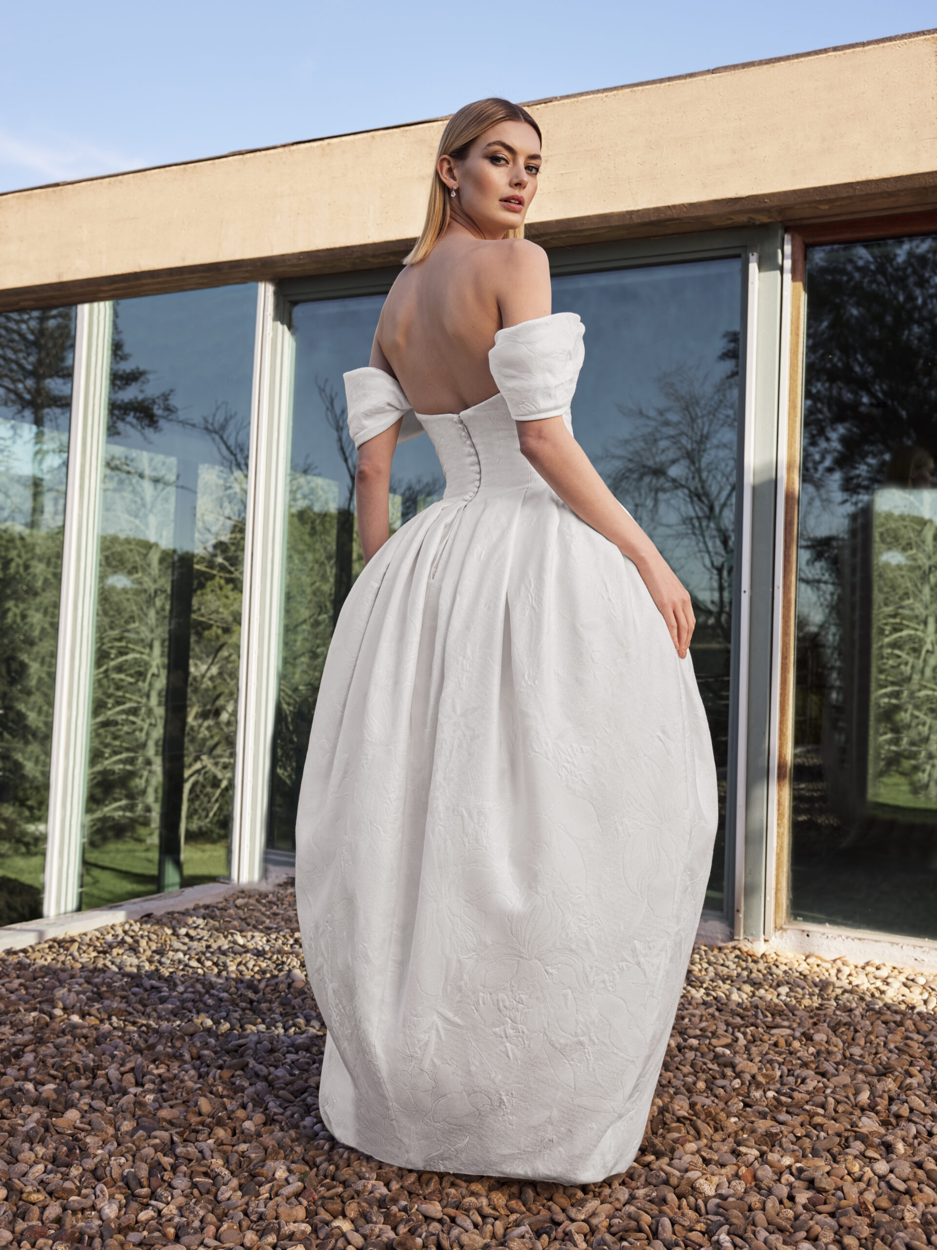 Look up! Halter necklines are a major trend for Spring/Summer 2026 bridal fashion. Sleek, sophisticated and comfortable, they draw attention to the face, neck and shoulders. The bonus? However you stretch and move, your dress doesn’t slip down and require a tug up.